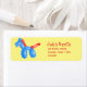 Get ready for your special kid's party ! Special cute party balloon animal horse cartoon personalised address labels with an art design of a cute blue balloon animal against a yellow customisable colour background. The text is fully customisable to include your own personal details.