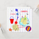 Fun bright and colourful; a day on the beach would not be complete without your bucket and spade for making sandcastles; then for a ball game and lets fly that kite. I can almost feel the sand between my toes; so cute. Adorable invitations for kids of any age and easy to customize with your personal party details as no extra charge..