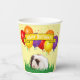 A cute white and brown guinea pig in grass with colourful balloons overhead is the feature on this party paper cup template design. Personalize the text field or edit using the design too to select a typeface style, colour, and size you like.