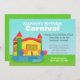 Kids will be excited to receive this bright and cheerful carnival birthday party invitation that has an inflated fun bounce house / castle with lots of colourful balloons hanging on the side. This is also perfect for elementary schools that are holding a school carnival. Designed by Rusty Doodle.