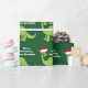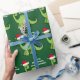 Awesome green dinosaur Christmas wrapping paper. This apatosaurus looks very cute in a holiday red Santa hat with a little smile. I like prehistoric Christmas animals and presents that kids will love. Customize this gift with the recipient's name to make it even more personalized.