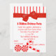 Sweet Christmas party invitation, done in red and white, with graphics of holiday candy and a big red ribbon and bow. Personalize the text to suit your party needs for the holidays. Very cute for children holiday parties.