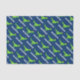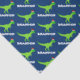 Papier Tissu de Noël pour enfants avec un drôle de dinosaure Père Noël. Vêtements cadeaux amusants pour cadeaux de vacances et faveurs de fête. Design gai avec t-rex dino portant un casquette du Père Noël. Bleu ou couleur arrière - plan personnalisée. Ajoutez le nom de votre enfant.