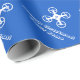 Kid's Christmas wrapping paper with flying drone pattern. Fun Holiday giftwrap rolls for children. Blue or custom colour background. Toy drone with personalize name and greeting. Cool design for boy, son, grandson, nephew etc.