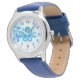 Kids classic leather strap watch is shown in blue with a cute octopus print.