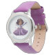 Kids classic leather strap watch shown in purple with a cute little princess print.