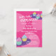 Kid's cupcake baking Birthday party invitations. Fun template with colourful cupcakes. Personalize with child's name and celebration day. Cute design with pink or custom colour background.