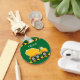 Cool custom construction vehicle gift for a child who loves yellow concrete cement mixers on a green keychain. Fun vehicle design for a little boy who loves cars and trucks. Customize with your kid's name under the black and yellow caution tape.