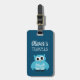 Kid's custom luggage tag with cute bird cartoon. Double sided print with custom name and address. Funny design with blue or other background colour. Personalized baggage labels for children. Cool Birthday gift ideas for travelling children, baby, grandson etc.
