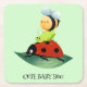 Kids Cute Red ladybug Bee bug insect on green leaf Square Paper Coaster