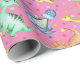 Kids dinosaur animal pink colour birthday gift wrapping paper