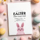Children's Easter celebration invitation with pink bunny with glasses. YOU CAN REMOVE THE GLASSES! Back with chequered pattern.