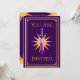 Magical purple sword birthday invitation perfect for a 5-year-old hero. Ideal for fantasy warrior themed parties and epic kids celebrations. Editable text for name, date and party details.