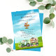 The invitation boasts delightful illustrations of farm animals, tractors, and barns, setting the stage for a lively and joyous celebration on the farm. The playful imagery captures the attention of little guests and sets the tone for a day filled with fun.