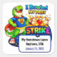Celebrate a milestone moment with this fun First Bowling Strike sticker featuring Rexy the T-Rex in a superhero pose!