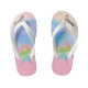 The flip flops arrived in a most colorful package which also had them double bagged in a black drawstring pouch which makes them great for gifting. They are a quality product with plenty of durability. The printing is vivid and true to that pictured on the web. Great look!