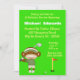 Golf Birthday Invitations with a sock monkey swinging a golf club. Design has golf ball headed for a hole in one. Customize with your party details.Kristiw