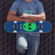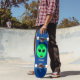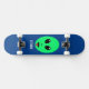 Show your moves on this Kid's Green Alien Personalized Kids skateboard. It is designed with a bright green alien head sticking out his tongue on the centre of customizable bright blue background. Name is in bold white lettering. Makes a great gift idea for science fiction, outer space and UFO lovers. Click personalize template option and enter name.