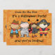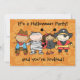 Here's a cute halloween costume party invitation especially for kids! The front features cartoon images of kids dressed as a cowboy, a mummy, a ladybug, and a pirate. The black text above and below the images can easily be made to say anything you'd like, or left as it is. The images and text are placed on an orange jack-o-lantern pattern background. The back of the invitation has the same pumpkin pattern background, with plenty of room for your custom text. Fun! *Clip art used in this design is copyrighted by Encore Software, Inc., which permits use to its licensors. All rights reserved.