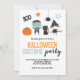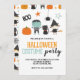 Halloween costume party invitation. A Spooktacular bash invite with cute witch, cat, pumpkin and frankenstein.