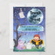 Add some fun to your Halloween event with our charming and fully customizable Trunk or Treat invitation! Featuring a cute Halloween design, this invitation showcases a little boy in a big yellow cape, accompanied by friendly ghosts and a lovely autumn tree. A large full moon adds a magical touch to this adorable scene. Perfect for kids and adults alike, our invitation is ideal for church events, community gatherings, neighbourhood festivities, and more