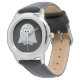 Kids watch shown in stainless steel with a black face and black strap with a Halloween ghost print. Customize this watch or buy as is.