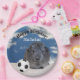 A cute grey guinea pig with a soccer ball sits under a partly cloudy blue sky on this template designed happy birthday paper plate. Personalize the text fields, remove the text or click customize to select a typeface style, colour, and size you like. If you like it but don't need it now, follow TheAspenStand to easily find it later.