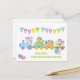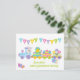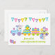 A Cute Happy Easter Holiday postcard with an Bunny Rabbit driving a train carrying Easter eggs, a chick and a lamb. with a colourful Happy Easter bunting banner A lovely sweet design for a church group, nursery, kindergarten or preschool to hand out to the children in celebration of the Easter holidays . Customize/personalize by adding a message and the name or your school, Play group, nursery, Church or any other organisation.