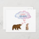 Warm and whimsical, this holiday postcard captures the gentle friendship between a bear and a rabbit sharing a festive moment .