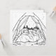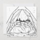 Cute colouring page with a with a camping theme. Two little kids sleeping in their sleeping bags in a tent on the campsite.