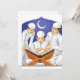 Vibrant colored letters, trees, holly and cancy canes in a cheerful message suitable for a non-religious holiday greeting. I especially liked it on the black background which made the design pop.