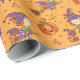 A Cute Orange Childs Wrapping Paper For Halloween Patterned In Little Witches And Pumpkins