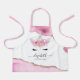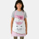 Unique girly cooking apron featuring pink and gold glitter agate crystal edges, a cute unicorn face with girly florals, the childs name in a elegant calligraphy font, and a personalized saying that can be deleted.