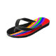 Kids flip flops with a modern and trendy geometric rainbow colour stripe pattern with the colours of purple, blue, lime green, yellow, orange, pink, red, and black. Customizable. Modern, chic, and classic, the perfect flip flops for everyday.