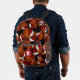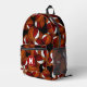 This cool basketball backpack features a random pattern of varied size basketballs turned every which way on a black background - each of the basketballs in the pattern has two recolored panels--one red and one white - customize with the athlete's monogram - by katz_d_zynes