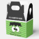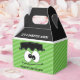 Kids Monster Birthday Party Favour Boxes, Halloween Favour Box. Celebrate your party with this cute Frankenstein Monster Mash party favour box! This gable style favour box has a green stripe background with a cute Frankenstein face and head where you can personalize the saying at the bottom to fit your Halloween event. The gable of the favour box is black with the wording "It's A Monster Mash".