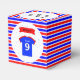 A great idea for both boys and girls parties, this fully customizable kids 9th birthday party favour box is in bright red and blue colours. The sports top image appears on both the front and back of the box, in a white circle with a scattering of blue stars. Type in the boxes above to enter the name of the birthday girl or boy in white text. The birthday banner declares "BIRTHDAY" in black capital letters - or this too can be edited. These elements are printed on both the front and back of the box. On the box lid, the text reads "Thank you for coming to my Party" or you can edit this to suit.