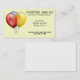 A business card suitable for a business specialising in Kids party entertainment. This card can be used for freelance clowns, magicians or anyone in the party industry. This business card is cute and colourful and features a bunch of party balloons. This card is fully customisable to include your own personal details.