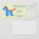 A business card suitable for a business specialising in Kids party entertainment. This card can be used for freelance clowns, magicians or anyone in the party industry. This business card is cute and colourful and features a cartoon blue and red balloon animal. This card is fully customisable to include your own personal details.