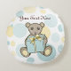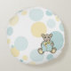 Kids Pastel Blue and Yellow Cute Teddy Bear Round Pillow