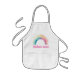 It is a good size for a child’s apron, it’s not too small and fits my 8 year old granddaughter perfectly. She was thrilled to see her name on the apron.The material is thick, excellent quality. The screen print of the cupcake is large and so is the child’s name. It takes up most of the upper half of the apron so it looks very nice. I haven’t washed it but the thick material will probably wash well.