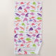 Kids Personalized Dinosaur Pink Purple Girls Watercolor Beach Towel. Fun dinosaur pattern in watercolor pink, purple and green on white background. www.SamAnnDesigns.com