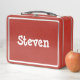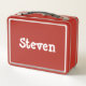 Kids Personalized Red White Whimsical Name Metal Lunch Box