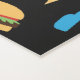 Kids Personalized Video Game Tech Party Snacks Yoga Mat. Pattern with video game controllers, headphones, doughnuts, ice cream, pizza, burgers and fries on a black background. Personalize with name. Fun gamer and desserts pattern. www.SamAnnDesigns.com