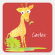 Kids Personalized Watercolor Giraffe Red Square Sticker