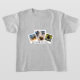 This kid's basic t-shirt is shown with a cute polaroid snapshot collage of Yellowstone geyser, bison, bear and wolf prints.