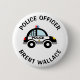 Kid's police officer name buttons with cop car. Cute themed Birthday gifts and party favours for children. Add your own personalized name.