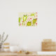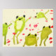A kids poster design of large cute green frogs playing around , painted in bright green watercolour from an original illustration. This gorgeous wall art is perfect for a child's bedroom or playroom.