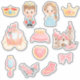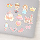Delight your child with this 12-sticker pack of a cartoon prince & princess, their crowns, castle, royal coach, and other elements.