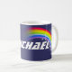 Bright and colourful rainbow "your name" kids mug. Perfect gift for a vibrant child. Mug reads: “Michael” or personalise this mug with the name of your choice up to 8 letters. Mug designed exclusively by Sarah Trett.